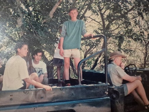Despite living in Australia , Bill and I used the Internet to talk though our political differences and my rejection of his second career, big game hunting. They did not interfere with visits to Bill’s hunting lodge, Bambatha’s Kraal where for the first time the cousins from Bill, Karine and me came together with a few of them with Bill in this photograph.